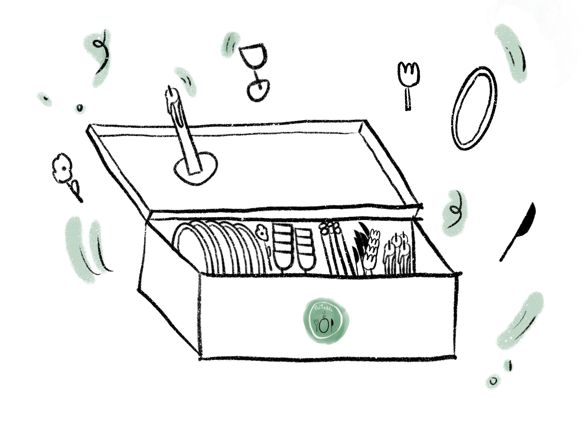 In elke box vind je alles wat je nodig hebt: zorgvuldig geselecteerd servies, bestek, glazen, tafellinnen en originele decoratie. Je haalt de complete box op, dekt thuis je tafel aan de hand van de instructiefiche, en geniet zonder zorgen van een sfeervol samenzijn. Na het feest breng je de box eenvoudig terug en hoef je enkel de herbruikbare items af te wassen. Welke gelegenheid ook: gezellig diner onder vrienden of familie, vrijgezellenfeest, babyshower, verjaardagsfeest, communie of lentefeest...